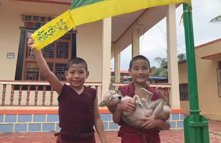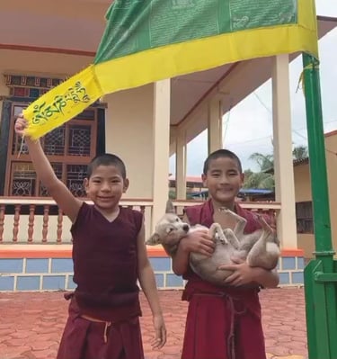 Depuis quelques années, nous soutenons les moines du monastère Pureng Shedpheling en Karnataka, en Inde. C’est lors d’une rencontre avec Son Éminence Tendar Tulku Rinpoché, le guide spirituel du monastère, qui venait donner des enseignements bouddhistes à Nice, que notre lien s’est tissé. Une belle connexion humaine m’a poussé à m’engager pour aider ces moines, jeunes et moins jeunes, dans leur vie quotidienne et leur apprentissage spirituel. À travers notre programme de parrainage, nous contribuons à leur bien-être en finançant leur nourriture, leur hébergement, leur formation ainsi que leurs soins médicaux.